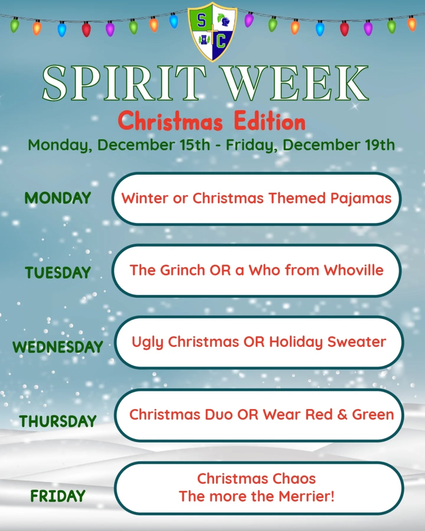 Christmas Spirit Week for Grades PreK-12